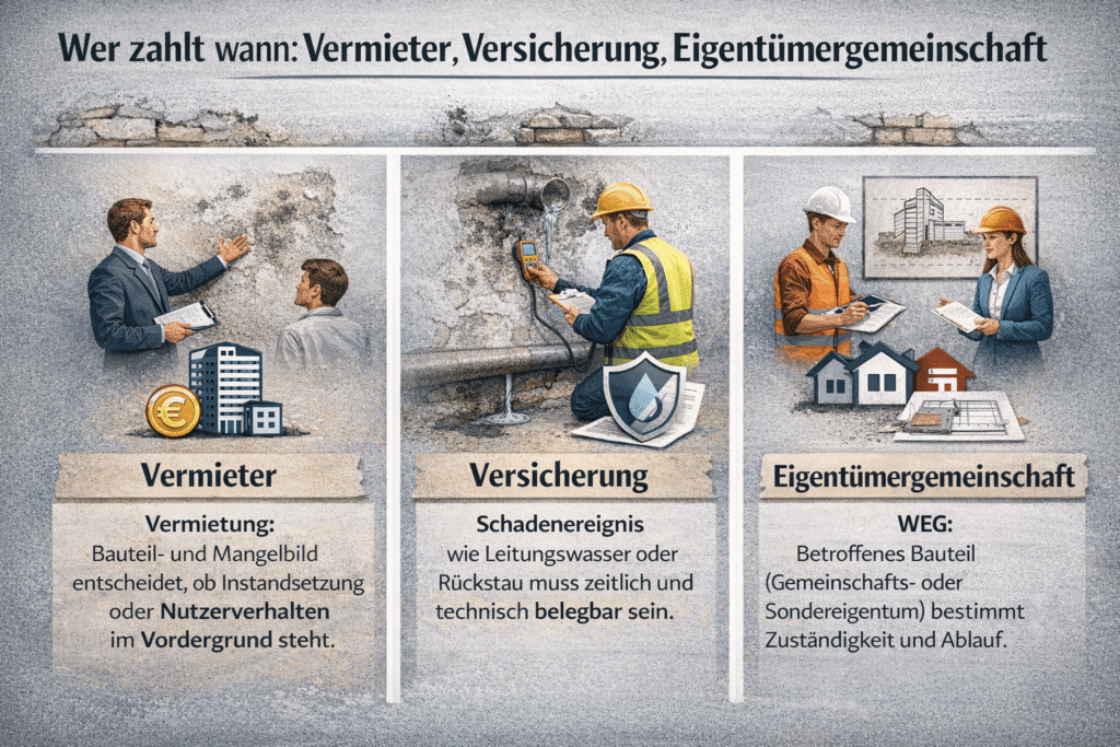 Wer zahlt wann: Vermieter, Versicherung, EigentĂŒmergemeinschaft